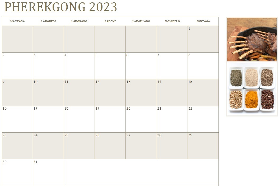 2023 Calendar with Sepedi naming for all 12 months.